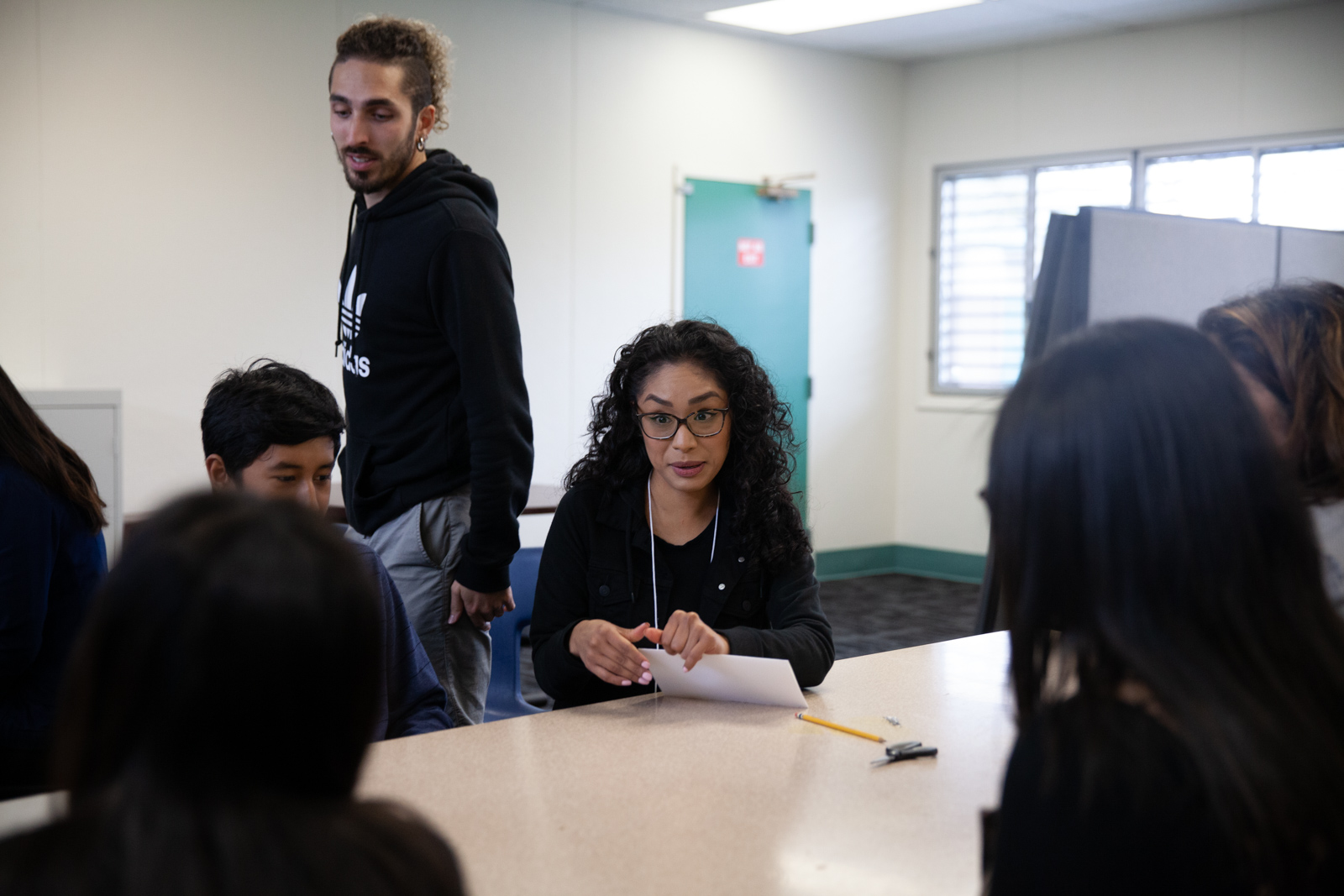 La Plaza’s executive director Javi Cabrera-Rosales leads a group at La Plaza’s site at Cesar Chavez Language Academy in Santa Rosa in March 2019