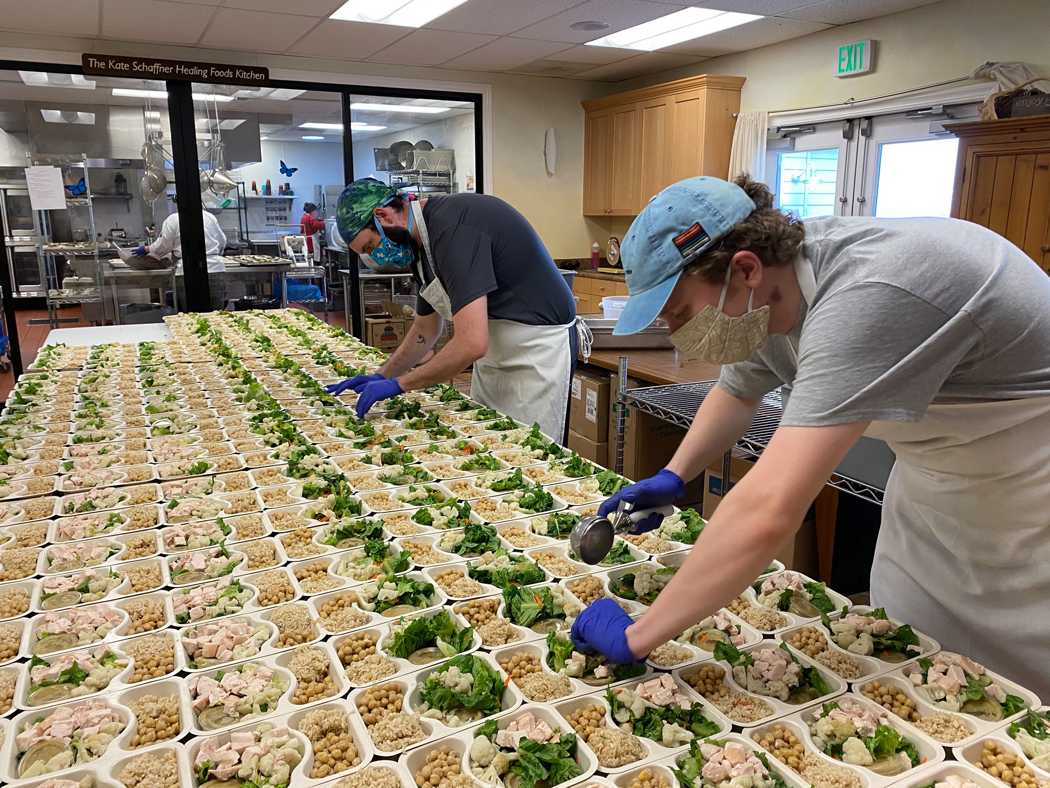 At the same time the kitchen, which often had up to 18 people busily preparing meals, downsized volunteer numbers to no more than 10 people in the kitchen at a time. Both the Santa Rosa and San Rafael sites were temporarily closed and all operations were consolidated at the Sebastopol site as the number of referrals to their program skyrocketed.